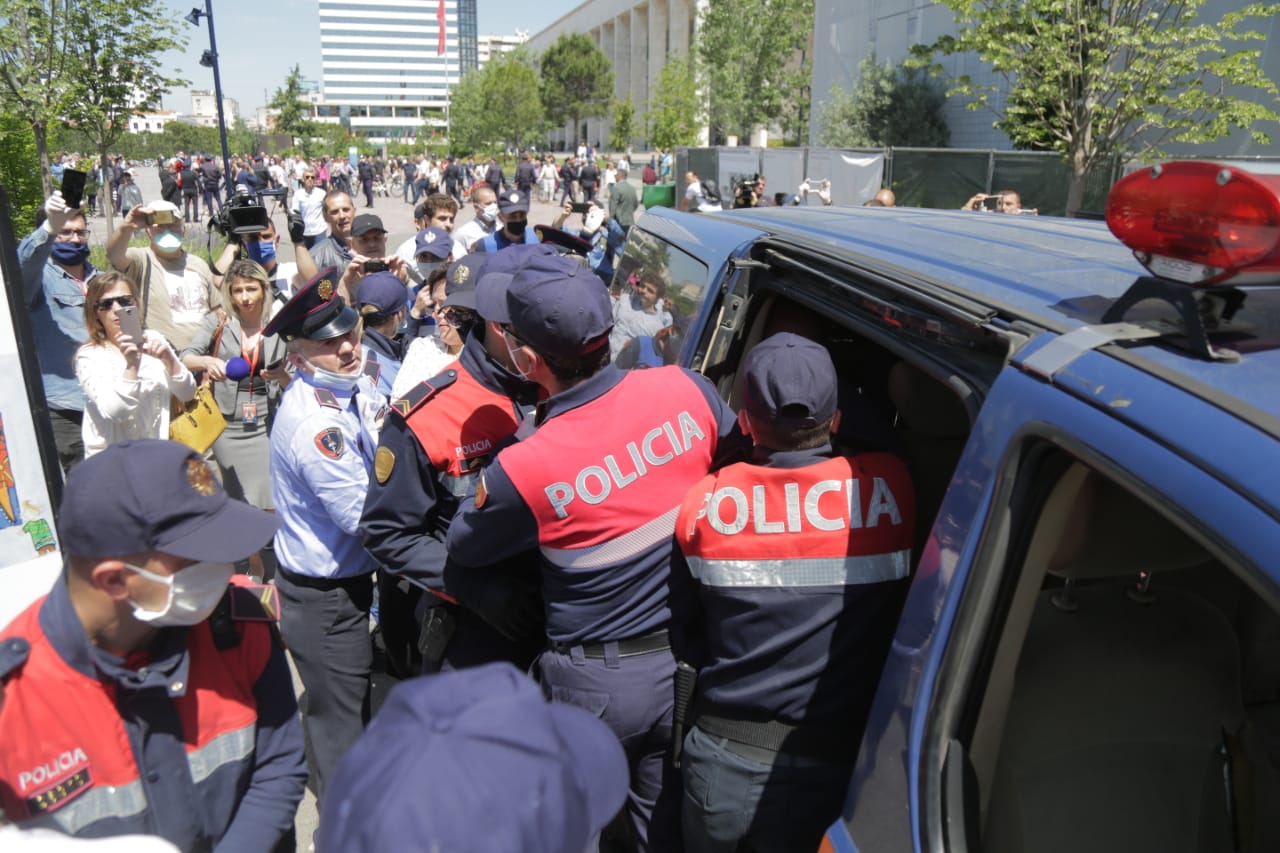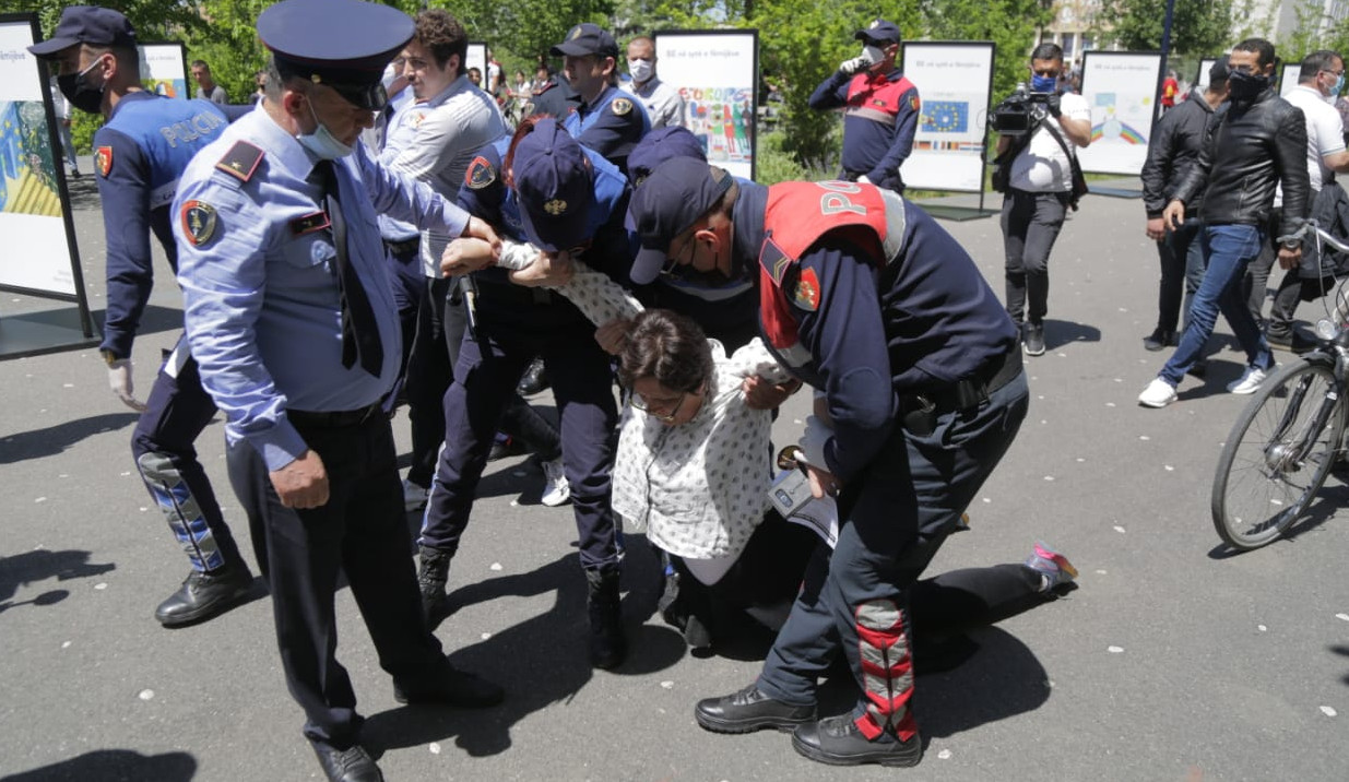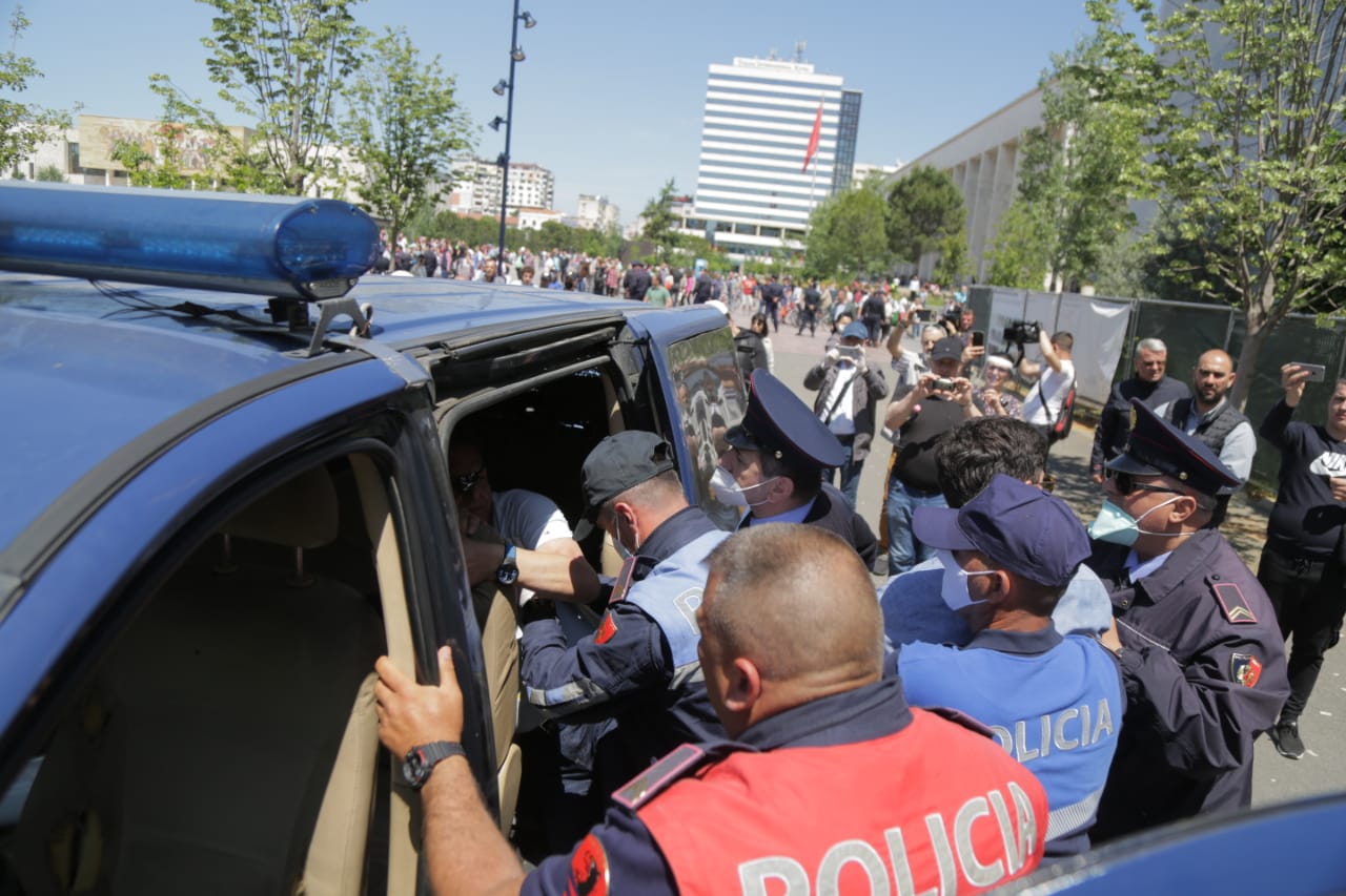 Protesta në sheshin “Skënderbej” përfundon dhe përleshje, policia tërheq zvarrë qytetarët