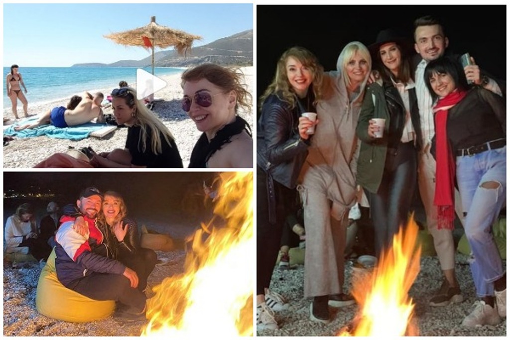 Në pamjet që ka postuar në Instagram këngëtarja Rovena Dilo, ata duken duke e shijuar shoqërinë e njëri tjetrit, me bikini në bregdetin e Borshit e gjatë darkave në ngrohtësinë e zjarrit.