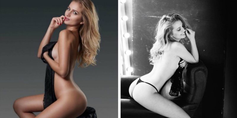 Në foto, ajo shfaqet e zhveshur, me një peshqir që i mbulon pjesët intime dhe dora i fsheh gjoksin.