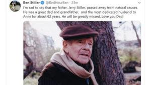 “Jam i trishtuar të them që babai im, Jerry Stiller, ndërroi jetë nga shkaqe natyrale.