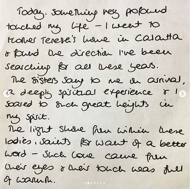60-vjeçari Paul Burrell, nga Cheshire, publikoi në Instagram fotografinë e letrës, e shkruar pas vizitës në shtëpinë e shenjtores në Kalkutë, në vitin 1992.