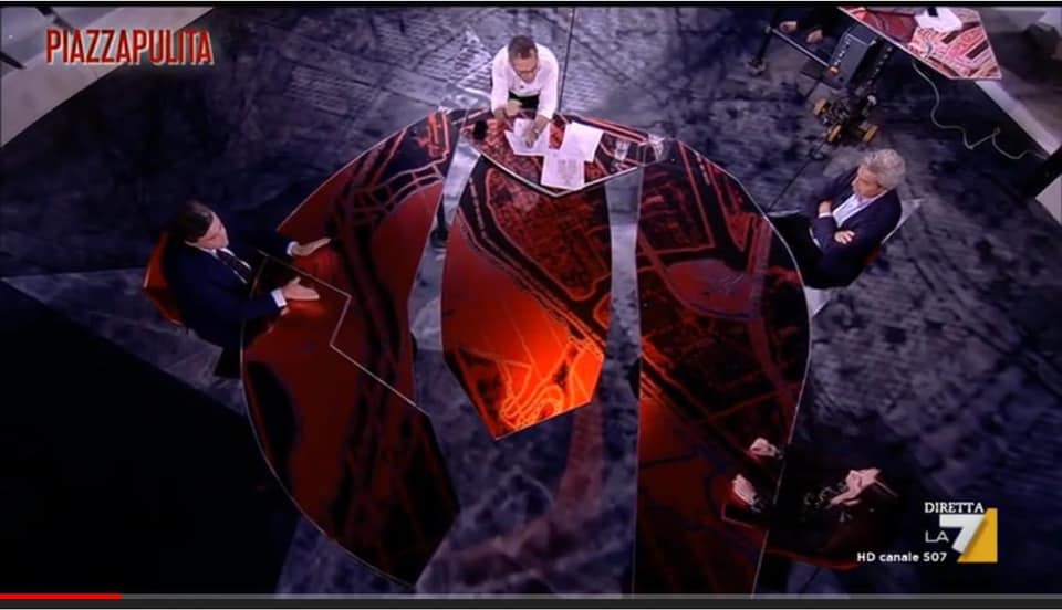 P.S Në foto pamje nga programi Piazza Pulita në La7 me 4 persona në studio, duke respektuar distancat./noa.al/