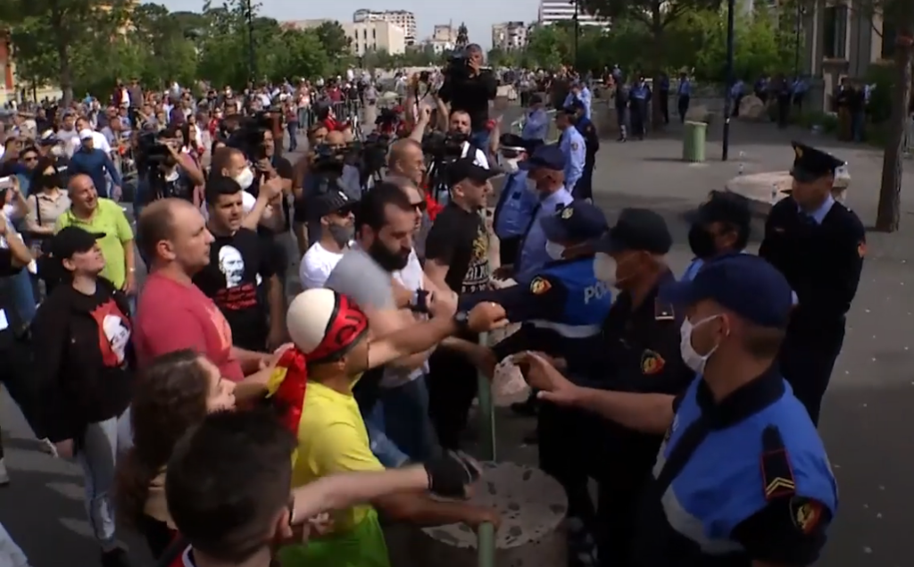Në kushtet kur Tirana është zonë e kuqe sa i përket koronavirusit, “Policia e Shtetit u bën apel organizatorëve dhe individëve që vijojnë të thyejnë ligjin, duke shkelur të gjitha parashikimet e Aktit Narmativ dhe duke vazhduar provokimet ndaj forcave të rendit që po kryejnë detyrën, tê mos vënë në rrezik shëndetin e punonjësve të policisë dhe as shëndetin e tyre, familjarēve të tyre dhe më gjerë, duke krijuar një vatër me potencial të lartē infeksioni nga Covid-19.