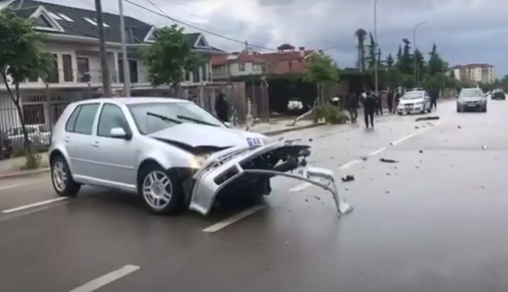 Një automjet tjetër, i cili ka devijtuar drejtimin e të parit, ka mbetur në mes të rrugës me pjesën e përparme të shkatërruar.