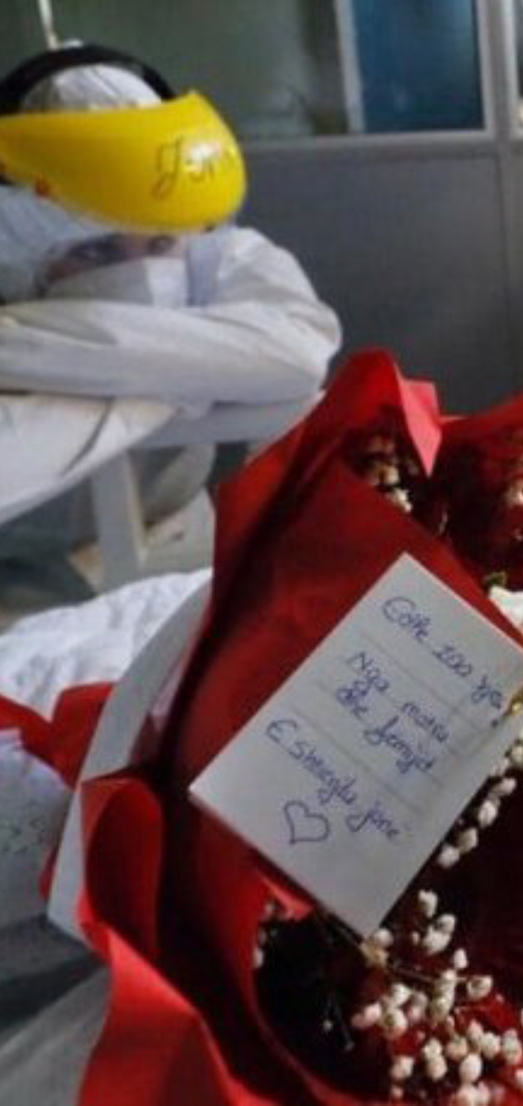 Në pamundësi për ta parë, fëmijët i kishin dërguar një tufë me lule në spital, siç shikoni dhe foto. Por duket se gruaja ishte në gjendje të rëndë.