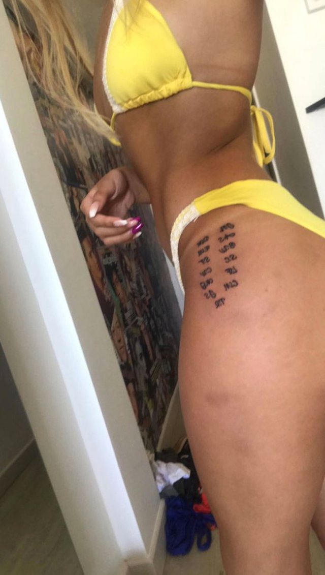 Ndërsa për të mbuluar inicialet e shtatë djemve që takoi gjatë pushimeve në ishullin spanjoll, ajo ka bërë sipër tyre një tatuazh të madh.