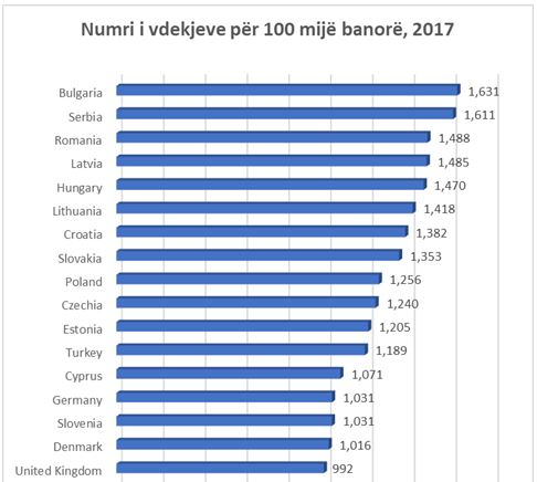 Nga shtetet e rajonit, Serbia renditet e dyta në Europë, për nga niveli i lartë i vdekjeve, me 1.611 vdekje për 100 mijë banorë.
