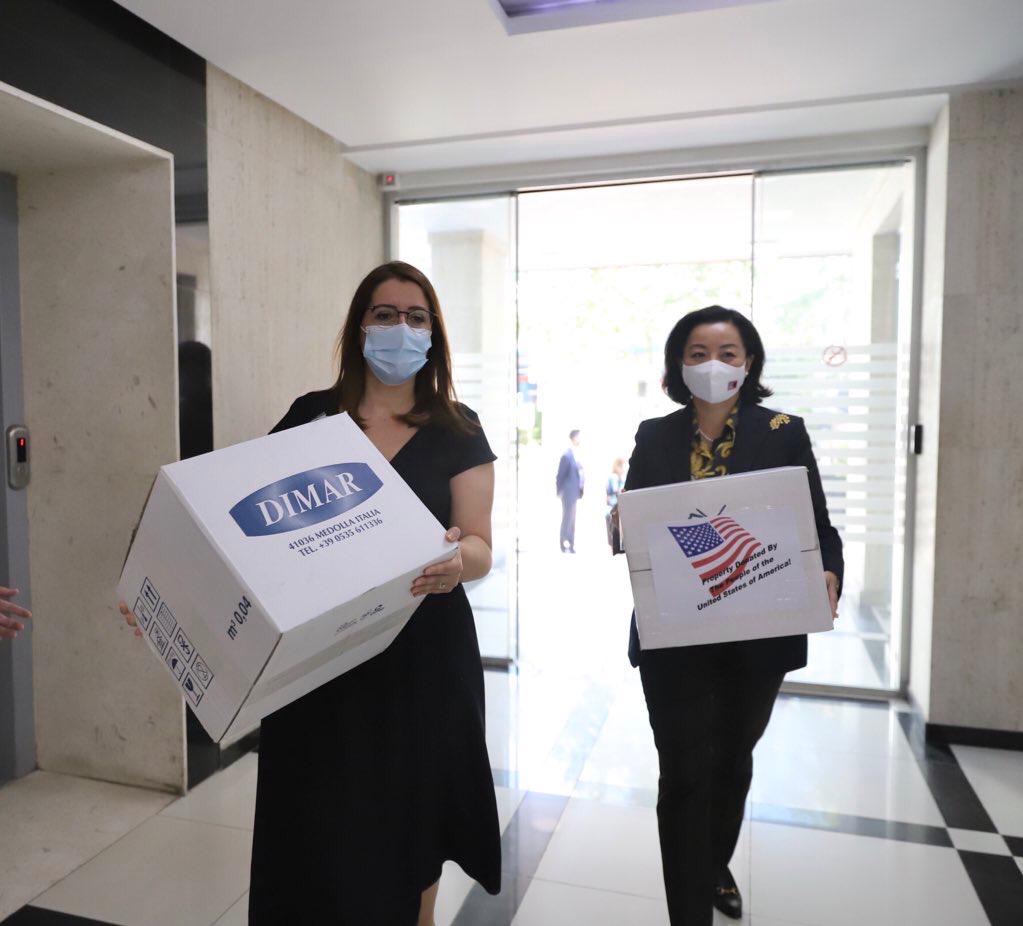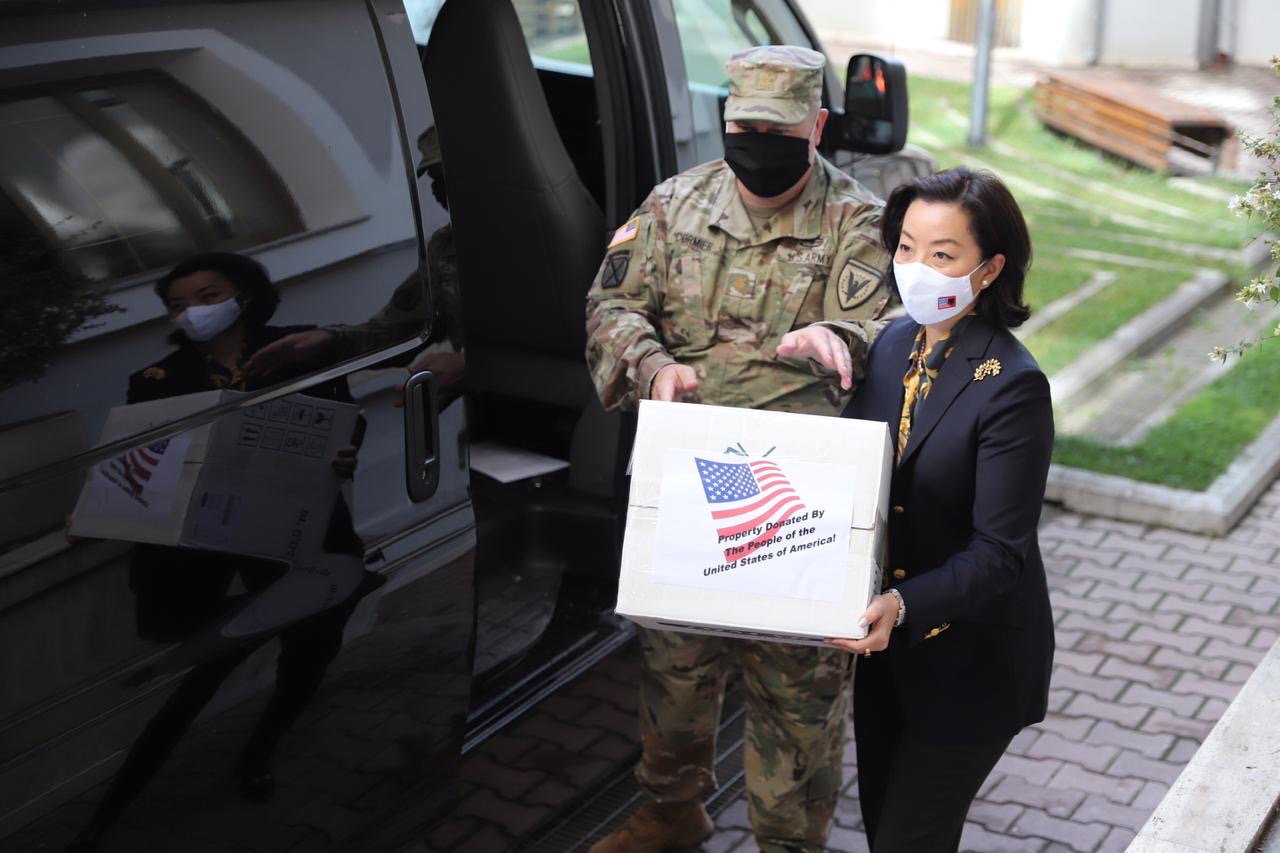 Ambasadorja e Shteteve të Bashkuara të Amerikës, Yuri Kim dorëzoi një tjetër dhurim pajisjesh shumë të nevojshme për kontroll dhe parandalim nga Programi i Ndihmës Humanitare të Komandës Evropiane, për Ministrinë e Shëndetësisë dhe Mbrojtjes Sociale, në mbështetje të përgjigjes së vazhdueshme të Shqipërisë ndaj pandemisë globale COVID-19.