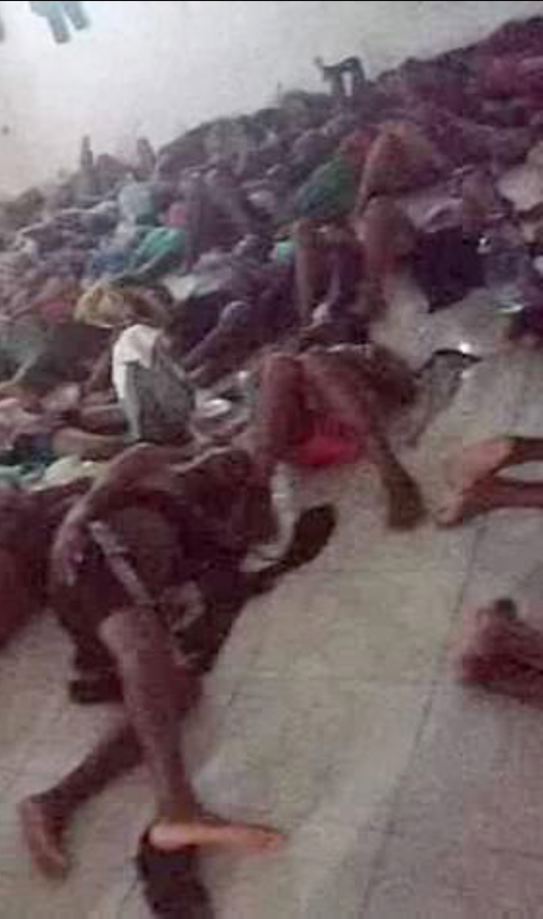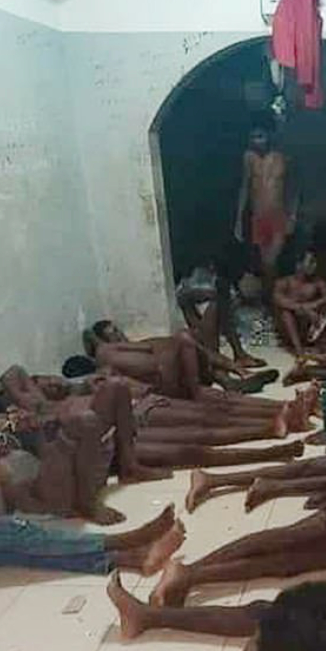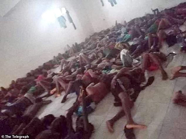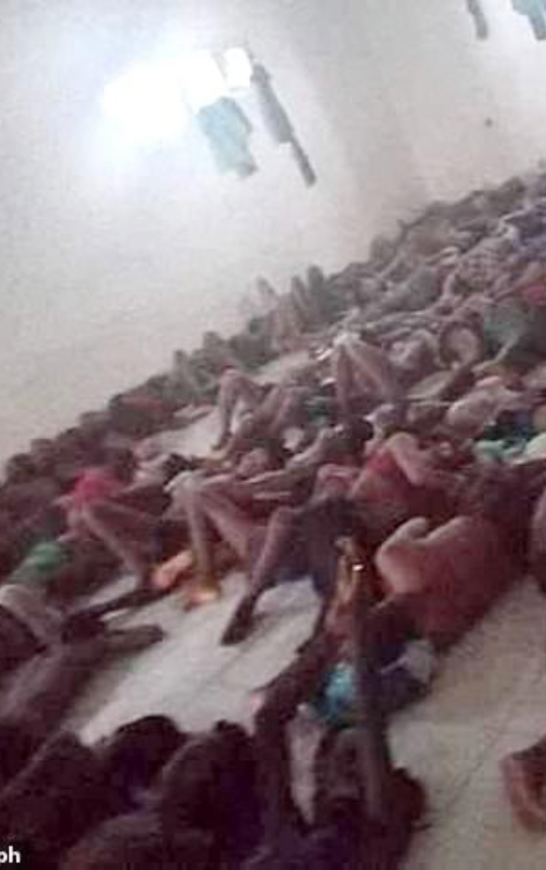 Një foto e shkrepur me një telefon të futur “kontrabandë” tregon emigrantët e zhveshur të shtrirë në dyshemenë e një qelie. Në një tjetër foto, një trup i pajetë është mbuluar me një batanije, ndërsa të tjerë luftojnë për ushqim dhe ujë të pijshëm.