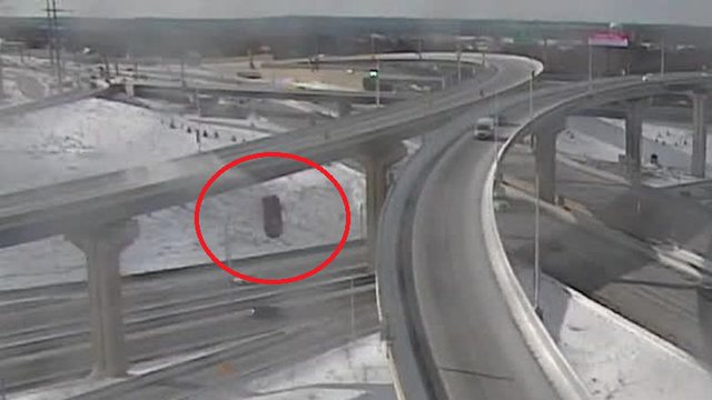Departamenti i Transportit në Wisconsin, ka publikuar pamjet e veturës që godet pjesën mbrojtëse të urës dhe përfundon i përplasur në rrugë.