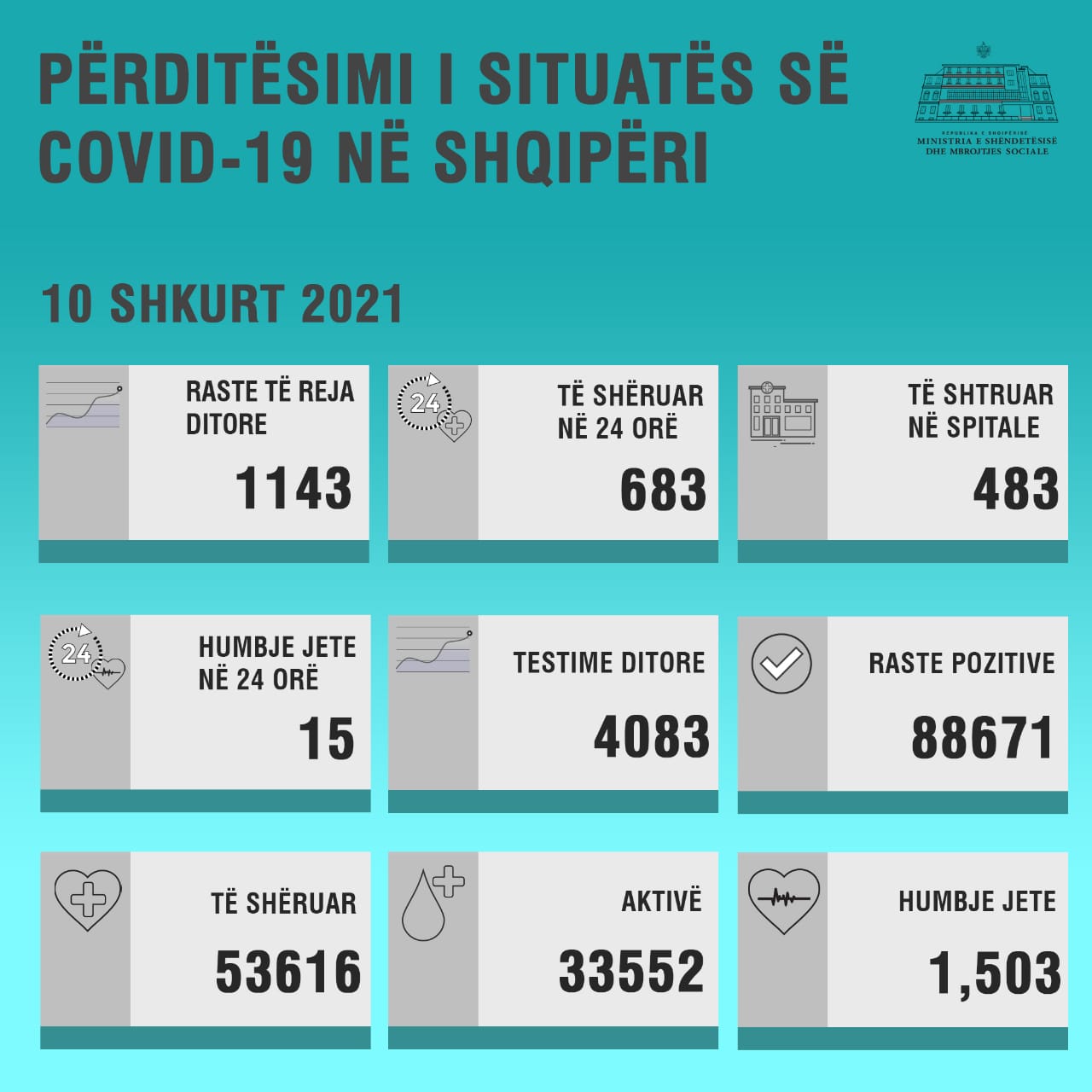 Nga 4 mijë e 83 testime janë konfirmuar 1 mijë e 143 të infektuar të rinj.