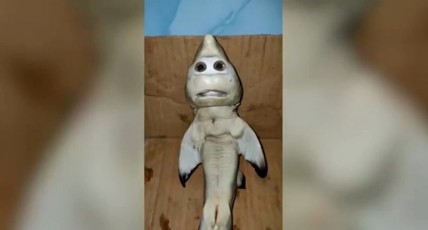 Një peshkatar ka mbetur “gojëhapur” kur hapi barkun e një peshkaqeni dhe pa një këlysh me pamje të çuditshme, fytyra e tij dukej si njeri.