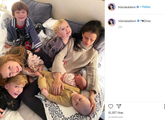 Duke komentuar foton në Instagram, Hilaria shkroi vetëm numrin 7 dhe një zemër. Ndoshta një referencë për numrin e fëmijëve të Alec Baldwin, i cili gjithashtu ka vajzën Ireland, të lindur nga marrëdhënia me ish-gruan, Kim Basinger.