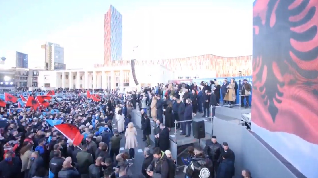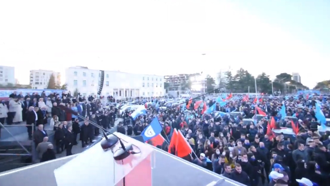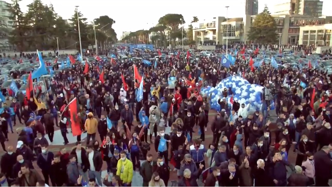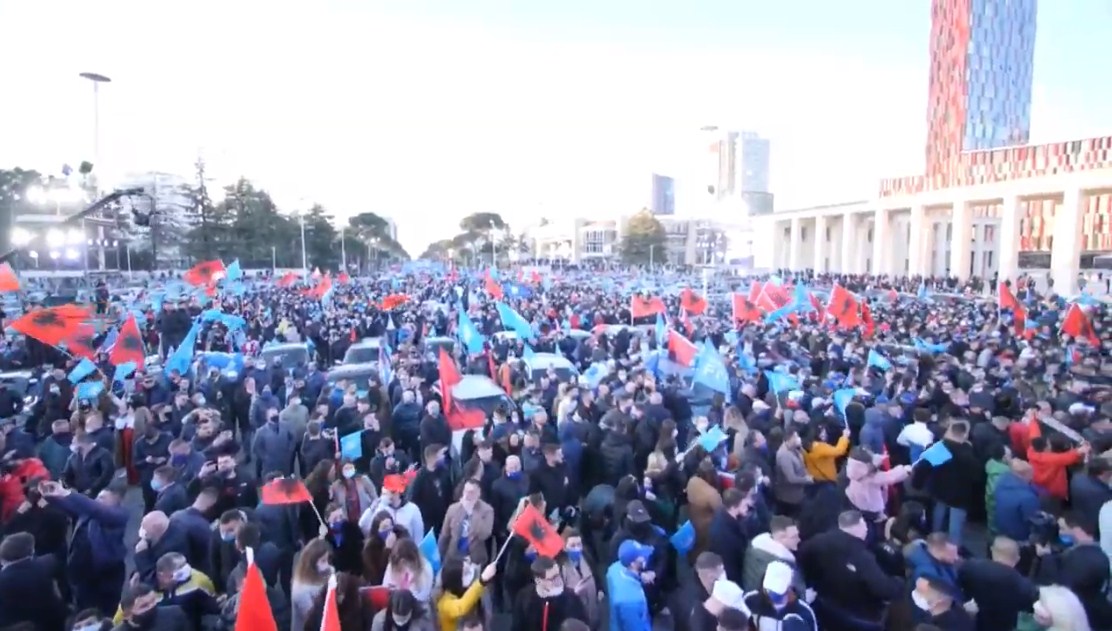 Ashtu si Joe Biden në mitingjet e tij nëntorin e kaluar në SHBA, mbushte hapësirat me mbnështetës që qëndronin në automjete, kështu po vepron edhe partia më e madhe e opozitës.