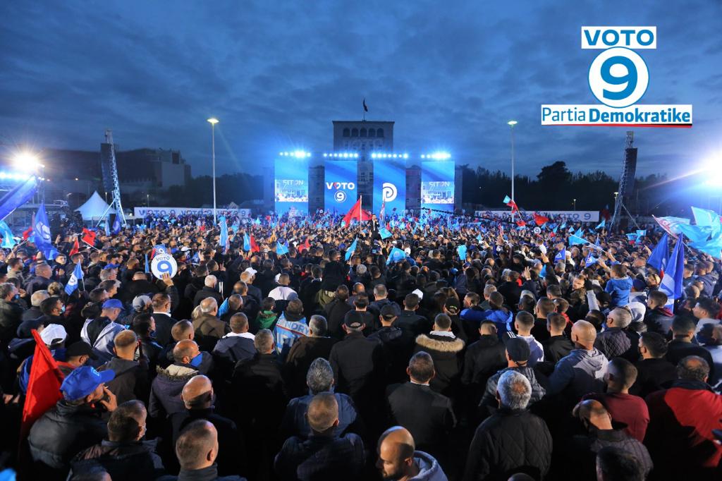 Lulzim Basha: Mirëmbrëma vëllezër dhe motra! Mirëmbrëma zonja dhe zotërinj! Mirëmbrëma të rinj dhe të reja! Mirëmbrëma Tirana! Mirëmbrëma Shqipëri! Kjo mbrëmje magjepsëse shënon fundin e një rrugëtimi. Një rrugëtimi që e nisëm bashkë nga ky shesh pak më pak se një muaj më parë e që na ka çuar nga jugu në veri, nga Tropoja në Sarandë, nga Korça në Durrës, cep më cep të Shqipërisë, të një Shqipërie të mbushur me shpresë, të një Shqipërie që po mbushet me gëzimin e fitores që po vjen. Sepse pas 8 vitesh të një rruge tjetër, në çdo fshat dhe qytet, në çdo shtëpi, sipërmarrje dhe fermë, kam parë në sytë e nënave tona, jo më dëshpërimin, jo më lotët por gëzimin për ditën e madhe që po afron. Ditën e fitores së çdo shqiptari, ditën e fitores së demokracisë, ditën e fitores si Shqipëria si gjithë Europa duke votuar numrin 9-të. Boll vëllezër dhe motra sepse ndryshimi është tashmë çështje orësh. Ai është madhërisht këtu në këtë shesh, në gjokset tuaja, në sytë tuaj, në zërin tuaj, ushton, ushton, ushton, numri 9-të. Për ndryshim, për fitoren e çdo familjeje shqiptare, për fitoren e nënave shqiptare, lotët e të cilave nuk kanë pasur të tharë këto 8 vite të vështira me fëmijët e larguar në emigracion, me burrat e shpunësuar, me shtëpitë e prishura, pasiguri për të nesërmen, pa rend, pa drejtësi por nënat shqiptare kudo ku i kam takuar, nënat shqiptare që ju shoh këtu në këtë shesh e kanë ngritur kokën sepse kanë shpresë, kanë besim dhe të dielën vjen ndryshimi për ato. Dhe për bashkëshortët e tyre, baballarët tanë të stërmunduar në 8 vite të një dimri pa fund, pa mundësi, pa një derë për të trokitur, pa një fjalë të ngrohtë, pa një dorë pas shpine por vetëm me vuajtje dhe mjerime, vetëm me çmime që rriteshin, vetëm me borxhe ku zhyteshin por i shoh sot, i shoh sytë e baballarëve, i dëgjoj thirrjet e tyre, e dinë, po vjen, nuk ndalet ditën e diel ndryshimi duke votuar numrin 9 dhe për fëmijët tanë, për vogëlushët tanë, për ata për të cilët po e bëjmë këtë betejë, më të madhen betejë, më të madhën betejë për zgjedhjet me praninë dhe masivitetin më të madh në 30 vite, për fitoren më të thellë në 30 vite, për fëmijët tanë, për shqiptarët e vegjël, shqiptarët e Shqipërisë si gjithë Europa, ditën e diel votojmë numrin 9. Është zgjuar shpresa, është zgjuar besimi me të cilin bashkë kemi arritur ëndrrat dikur të paprekshme për këtë Komb. Ju jeni burrat dhe gratë, ju jeni rinia e mrekullueshme e këtij vendi. Unë jam krenar për ju! Kam besim tek ju, sepse bashkë ne kemi ditur të bëjmë gjëra të mëdha, gjëra në dukje të paarritshme e që sot i gëzon çdo shqiptarë. Ne ishim burrat dhe gratë që hoqëm vizat. Ne ishim burrat dhe gratë që lidhëm kombin. Ne ishim burrat dhe gratë që mundësuam zhvillimin. Ne jemi sot këtu, në këtë shesh dhe gjithë ky gëzim, ky ngazëllim, ky shesh magjepsës, është një përgjegjësi e jashtëzakonshme për mua, për ekipin tim të mrekullueshëm. Për t’ju shërbyer dhe për të bërë realitet ëndrrat tuaja, ambiciet tuaja, për ta çuar Shqipërinë përpara, atje ku e meriton, në gjirin e Europës. Asaj të cilës i përket, aty do të jetë. Aty ku e do rinia shqiptare dhe kurrë më plagët e zemrave të nënave nuk do të kullojnë sepse ne jemi këtu, me një zotim, me një vullnet. Ndryshim! Ndryshim! Ndryshim për Shqipërinë! Bashkë për Ndryshim! Votojmë numrin 9 dhe kështu do të bëjmë të mundur arsimimin e të rinjve këtu, në vendin tonë. Punësimin e tyre me dinjitet me investime të huaja që prapë do t’i kthejnë sytë nga vendi i bekuar i bijave dhe i bijve të shqipes! Dhe kështu pra, vëllezër dhe motra, një dimër tetëvjeçar ka dhe dy ditë për ta mbyllur dhe unë e di se Tirana, kjo vulë kryeqytetase e ndryshimit do t’i prijë ditën e diel, pjesëmarrjes masive që në orët e para të mëngjesit. Do t’i prijë me votë fitores më të thellë të Shqipërisë dhe të shqiptarëve. Vëllezër dhe motra, për 8 vite me radhë kanë marrë gjithçka. Një grusht njerëzish dhe një njeri i vetëm mbi ta, 8 vite me radhë zhvati dhe grabiti, dinjitetin e përdhosi, sigurinë e kërcënoi, vendit ia mbylli portat e integrimit dhe mendoi se për pak u bë Zot edhe i votës tuaj por kjo nuk është Tirana e tyre. Kjo nuk është Tirana e Edi Ramës. Kjo është Tirana e tiranasve, e kryeqytetasve, e shqiptarëve. Ky është vendi ynë dhe të Dielën me votën tuaj do ta rimerrni Tiranën, do ta rimerrni Shqipërinë dhe fatin tuaj në duart tuaja duke votuar numrin 9. Bashkë për ndryshim do të thotë që ne do ti japim fund njëherë e mirë arenës së shëmtuar ku shumica dërrmuese e shqiptarëve e varfëruar, e poshtëruar dhe e papunë, këqyrë një pakicë babëzie tek merr pasuritë e vendit, vjedh taksat e vendit dhe varfëron në palcë çdo familje. Do të thotë ti japim fund një arene të konfliktit dhe përçarjes që i shërben vetëm një njeriut atij që për 8 vite me radhë nuk bëri asgjë përveçse u pasurua dhe grumbulloj më shumë pushtet se kushdo tjetër përpara tij këto 30 vite. Ndaj unë e dijë në këtë shesh ushtojnë zërat e demokratëve dhe demokrateve, flamurtarëve të ndryshimit, të qytetareve dhe qytetarëve, mbështetësve, simpatizantëve, por nga ky shesh, nga shtëpitë e tyre e kudo ku ndodhen dua ti them mirë se vini në bashkimin më të madh të shqiptarëve çdo shqiptari, çdo shqiptareje pa dallime politike, sepse dita e diel është dita e çlirimit për të gjithë ju, është dita e çlirimit për qindra-mijëra rrogëtarë gjunjë këputur, gjunjëprerë dhe të dhunuar nga ky shtet që i trajton si skllevër. I ndjej, i dëgjoj akoma zërat e tyre. Jemi me ju, jemi bashkë, më 25 prill vota jonë është për nu