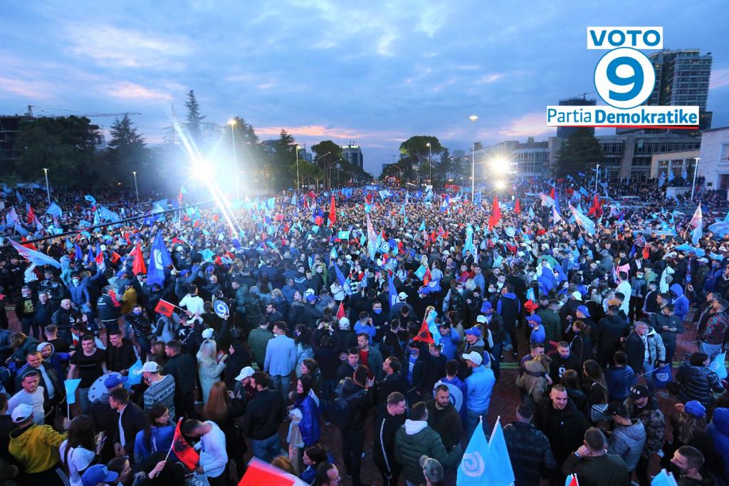 Mijëra qytetarë dhe shumë të tjerë në disa qindra makina u mblodhën sot pasdite në sheshin ‘Nënë Tereza’ në pritje të liderit të Partisë Demokratike, Lulzim Basha, i cili mbylli fushatën elektorale të nisur një muaj më parë.