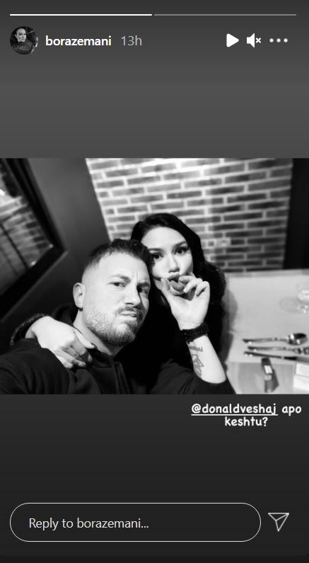 Megjithatë, Bora ende e ndjek vëllain binjak të Donaldit, Romeo Veshajn. Nuk dihen ende shkaqet e kësaj krize në lidhjen e dyshes. Para pak javësh, Bora publikoi në Instagram-in e saj disa imazhe ku shihej krah Donaldit teksa darkonin. Pak ditë më parë, ish-partneri i moderatores, Vin Veli, tregoi se mes tyre kishte një marrëdhënie shumë të mirë. Ata takohen shpesh për shkak të djalit të tyre 6-vjeçar, Arborit./K.B/NOA.al