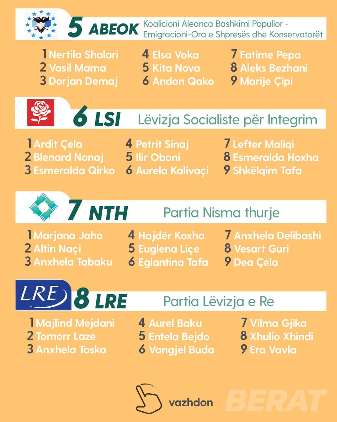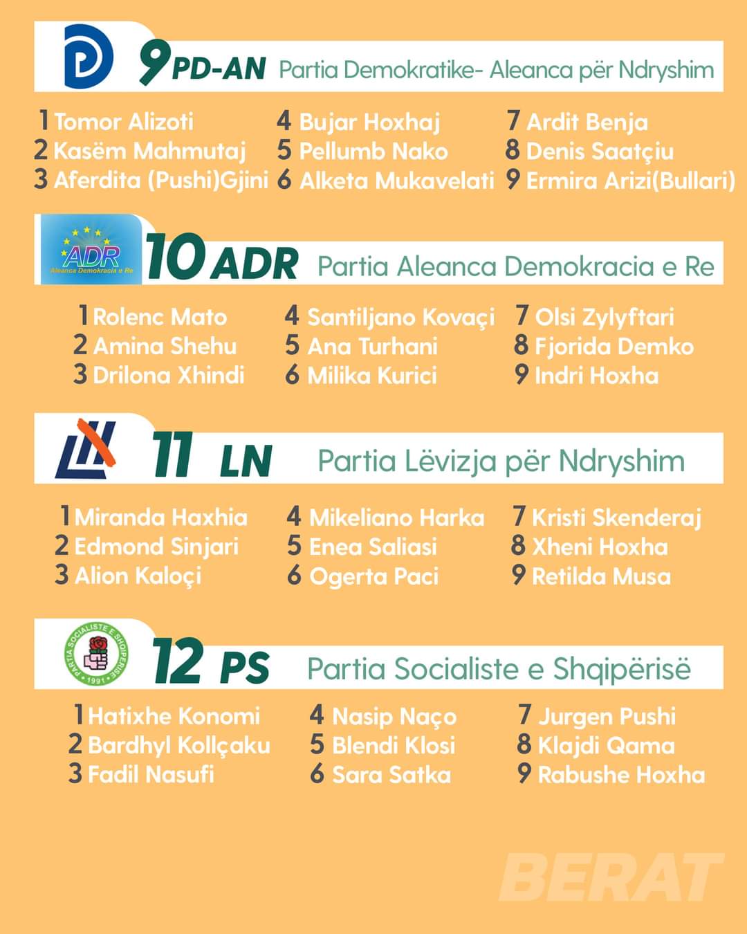 Në zgjedhjet e nesërme, në qarkun Berat janë thirrur të votojnë 183.119 banorë. Në këtë qark do të votohet për të nxjerrë 7 deputetë në Parlamentin e ardhshëm me 140 deputetë.