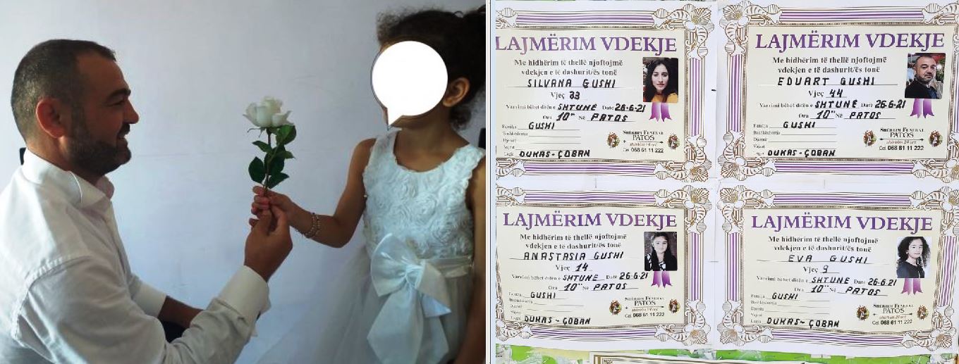 Eduart Gushit, 44 vjeç, gruas së tij, Silvana Gushi, 33 vjeçe, dhe dy vajzave të tyre të mitura, Anastasia dhe Eva iu dha lamtumira e fundit nga familjarët mes dhimbjeve dhe lotëve.