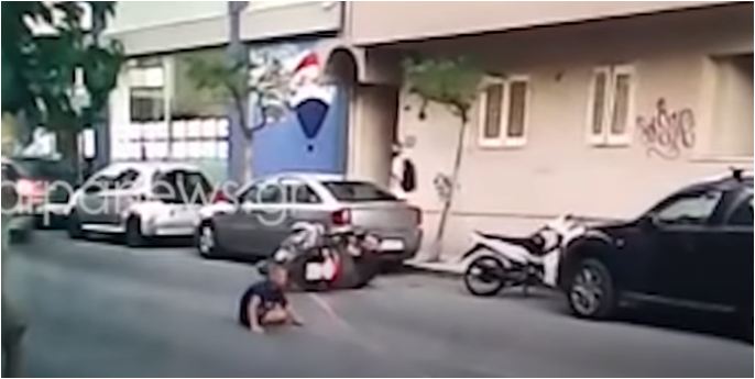 Por pikërisht në atë moment motori e përplas dhe e tërheq zvarrë për disa metra. Për fat të mirë fëmija nuk pësoi dëmtime të rënda dhe arriti që me ndihmën e qytetarëve të ngrihej.