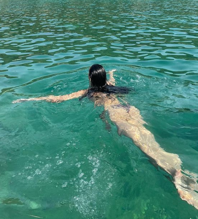 Gjithashtu ajo ka ndarë me miliona ndjekësit e saj edhe disa imazhe ku shfaqet me bikini, duke treguar format e saj të tonifikuara. Edhe krahas këtyre fotove, ajo shkruan se nuk ka dëshirë që të largohet nga aty.