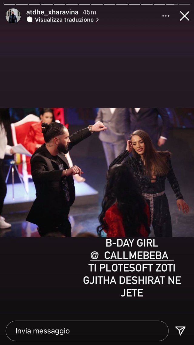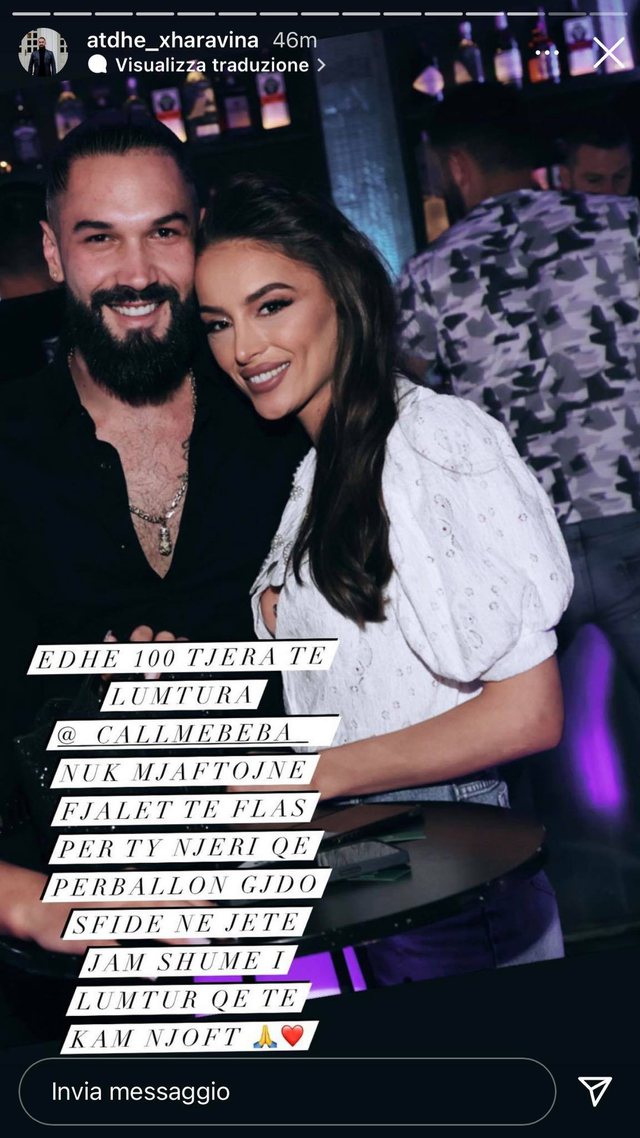 Më pas Xharavina ka postuar një foto të shkëputur nga një puntatë e “Për’puthen Prime” teksa kërcejnë së bashku.