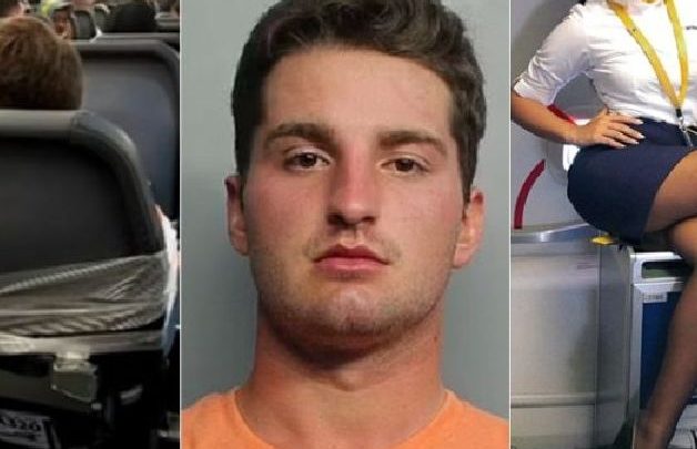 Një 22-vjeçar, i cili ishte duke udhëtuar për në Florida në avion ka pasur një sjellje të çuditshme. Pasi kishte pirë disa gota alkool, ai filloi të bërtiste në avion dhe më pas derdhi gotën në këmishën e tij.