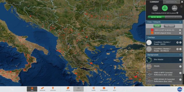 Prej ditësh Shqipëria dhe vendet e tjera të rajonit janë përfshirë nga zjarre të mëdha. Falë teknologjisë së NASA-s mund të shihet se cilat janë vatrat aktive në Shqipëri dhe mbarë Ballkanin.