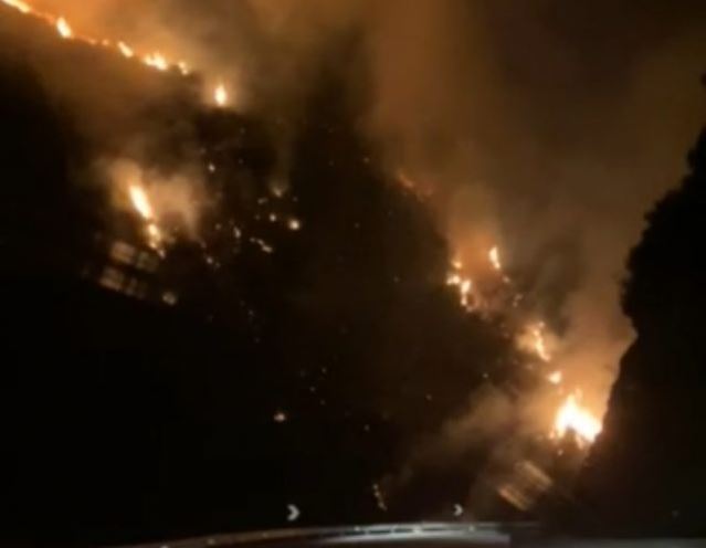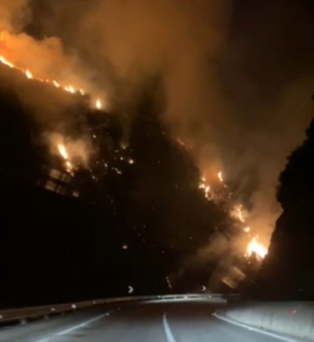 “Himara e pushtuar nga flakët vetëm pak minuta më pare! Në zbritje nga qafa Vishës drejt Himarës!!” shkruan Vasili.