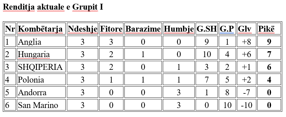 Përfaqësuesja shqiptare do të përballet më 2 shtator me Poloninë në transfertë, me sfidën që luhet në stadiumin “PGE Narodowy” të Varshavës, duke filluar nga ora 20:45. Më 5 shtator, Shqipëria pret Hungarinë në ndeshjen e pestë të eliminatoreve, që luhet në stadiumin “Elbasan Arena” në ora 18:00. Sfida e tretë e shtatorit është ajo e datës 8, me Kombëtaren që do të presë San Marinon po në “Elbasan Arena”, ndeshje që starton në ora 20:45.