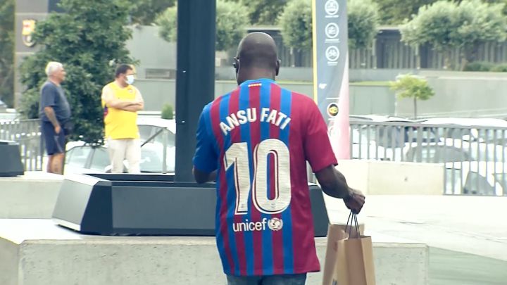 Kamerat e “Deportes Cuatro” shoqëruan Bori Fati, babain e Ansu Fati, teksa bleu fanellën e re të Barcelonës me numrin 10, që i biri e trashëgoi nga Leo Messi. Ai bleu 8 fanella për të gjithë familjen. Pra, në total shpenzoi më shumë se 800 euro në dyqanin e Barcelonës.