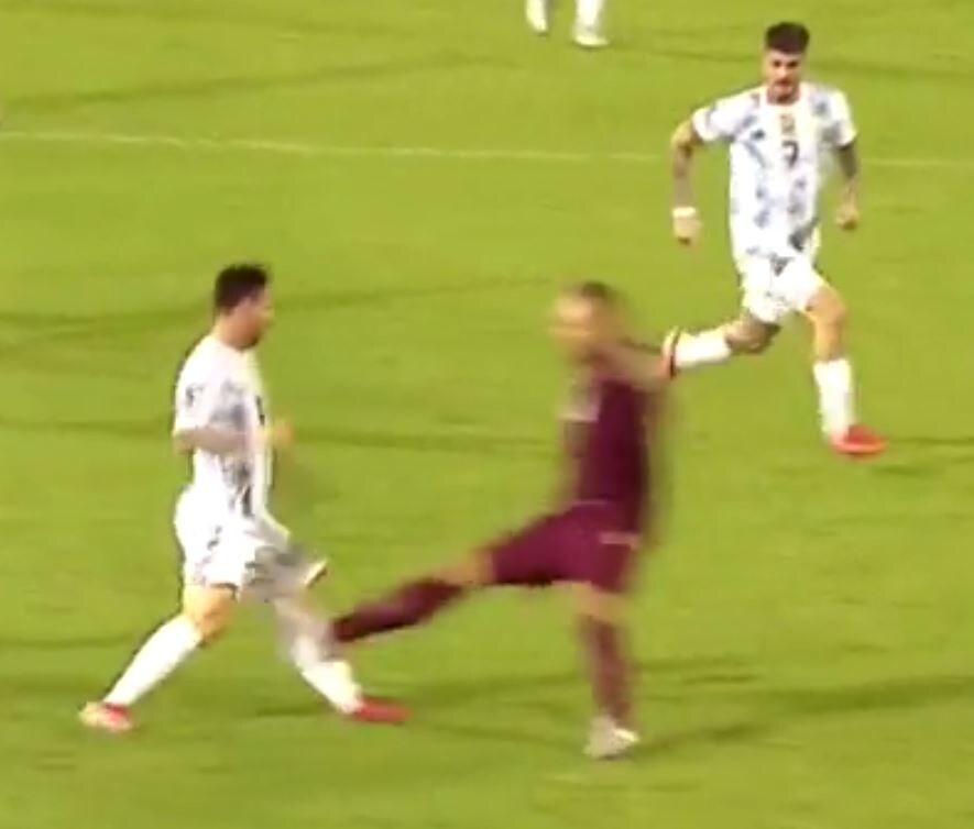 Në minutën e 32-të të ndeshjes kundër Venezuelës, e vlefshme për kualifikueset e Kupës së Botës, “Katar 2022”, mbrojtësi Adrian Martinez, i cili hyri në fushë në minutën e 25-të, kreu një ndërhyrje shumë të rrezikshme ndaj Lionel Messit.