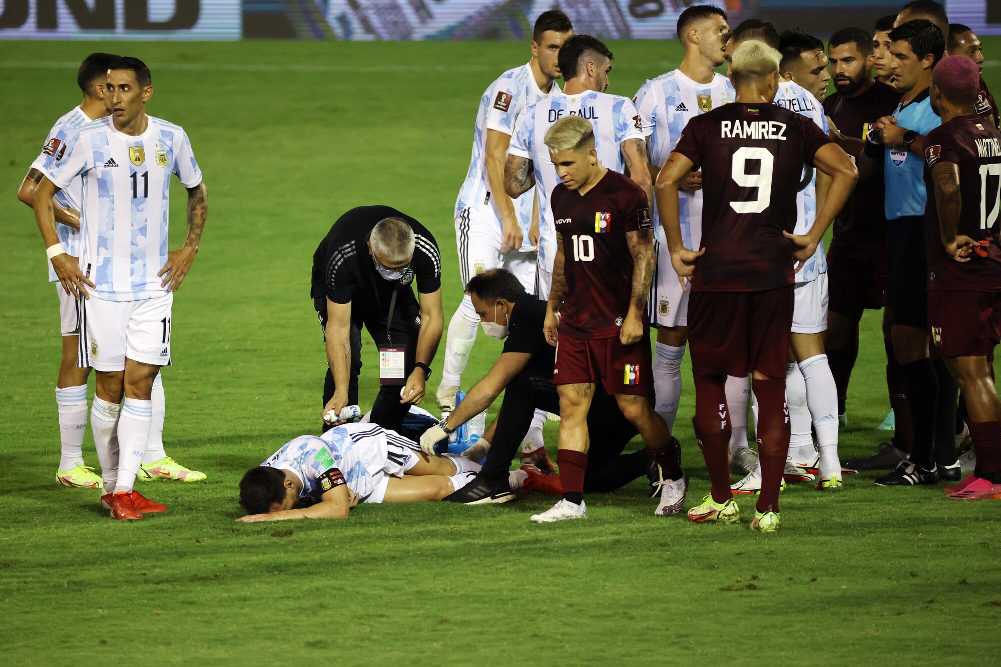 Pastaj, 34-vjeçari u ngrit duke çaluar disi, por me kalimin e minutave iu kthye normalitetit dhe luajti me kohë të plotë. Fillimisht, gjyqtari uruguajan i akordoi vetëm karton të verdhë mbrojtësit të dhunshëm venezuelian.