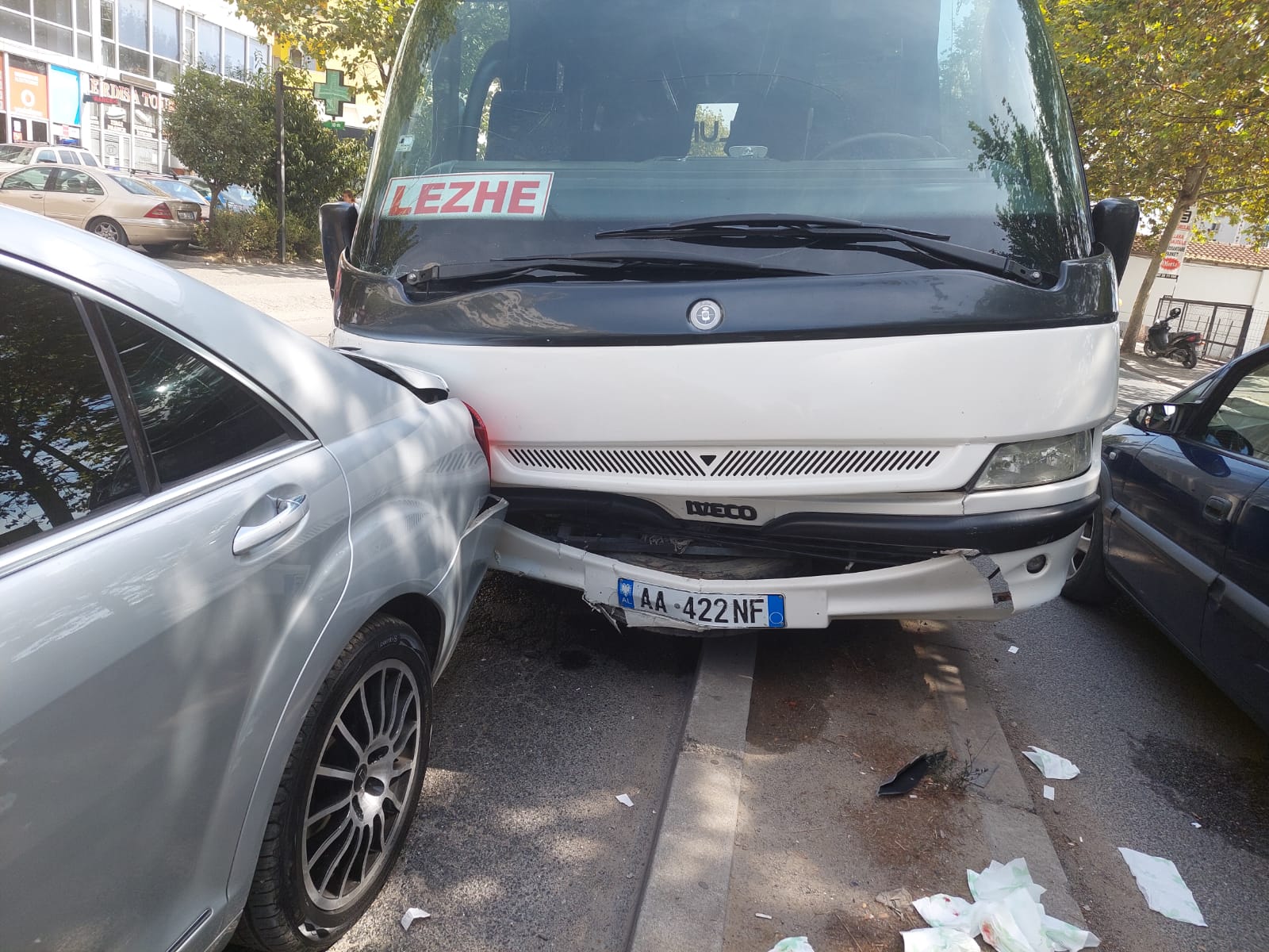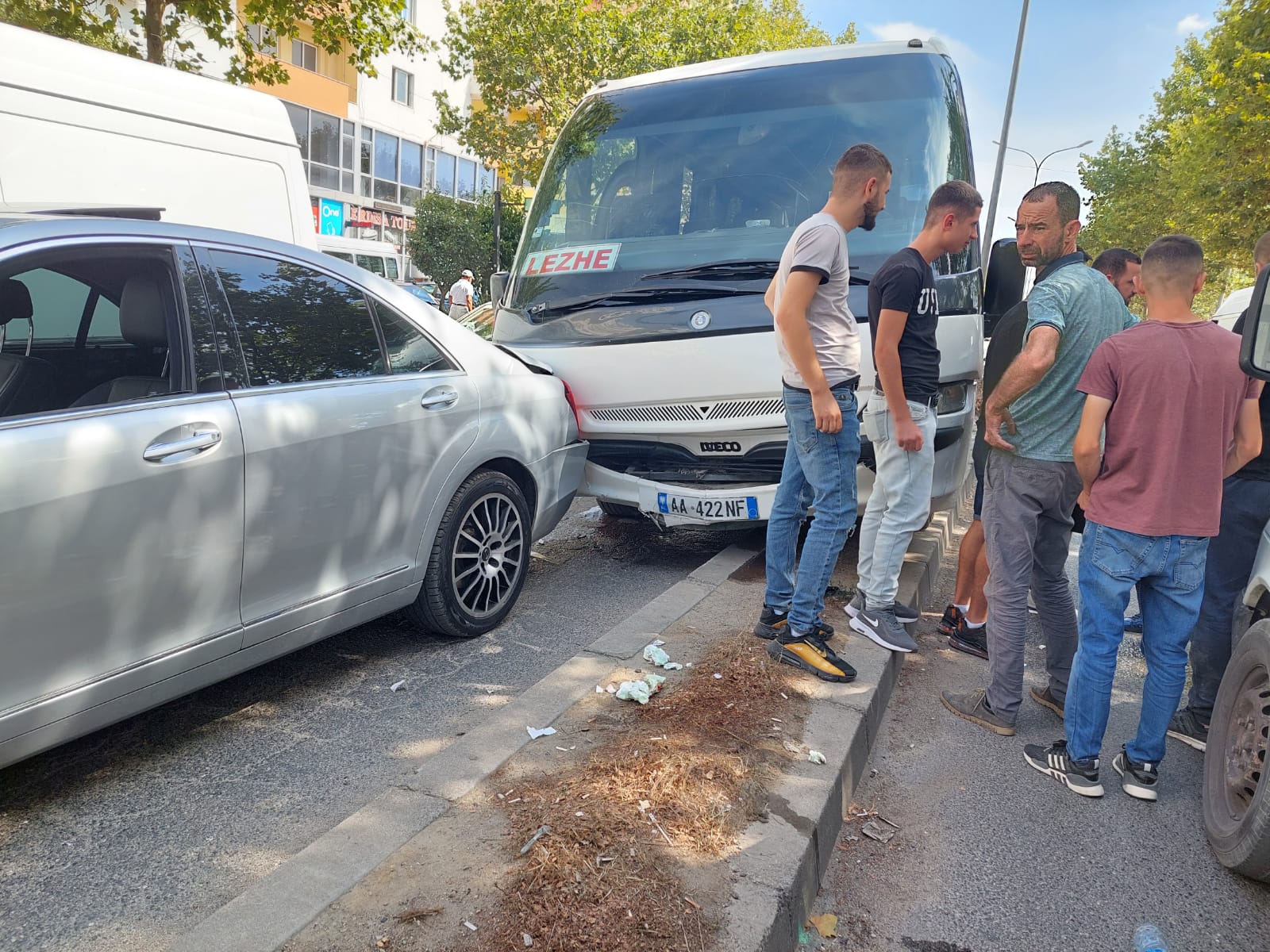 Autobusi me targa AA 422 NF, ishte i linjës Tiranë-Lezhë. Raportohet për një person të plagosur, por pasagjerët në autobus thanë se ishin trembur nga përplasja e papritur. /noa.al