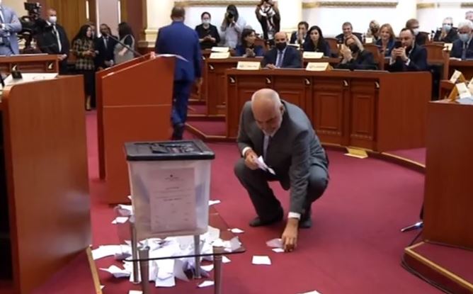 "Në shenjë proteste ndaj kandidaturës së Lindita Nikollës, deputetët e opozitës grisin fletën e votimit", pohuan burimet për PD. Kjo tregon se ishte një skenar i parapërgatitur.