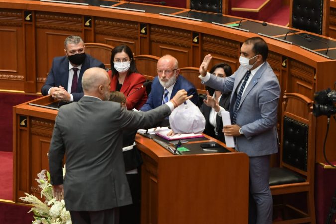 Rama i futi letart në një qese, e më pas, u ul në poltronin e tij në sallën e Kuvendit. Por, ky veprim i kryeministrit është kundërshtuar nga deputeti i PD, Belind Këlliçi, i cili deklaroi se ky akt cënonte procesin e votimit.