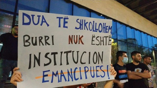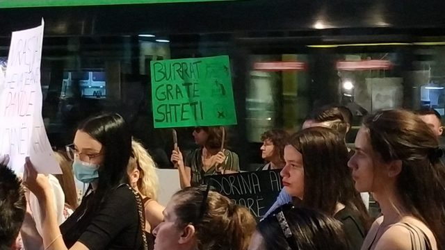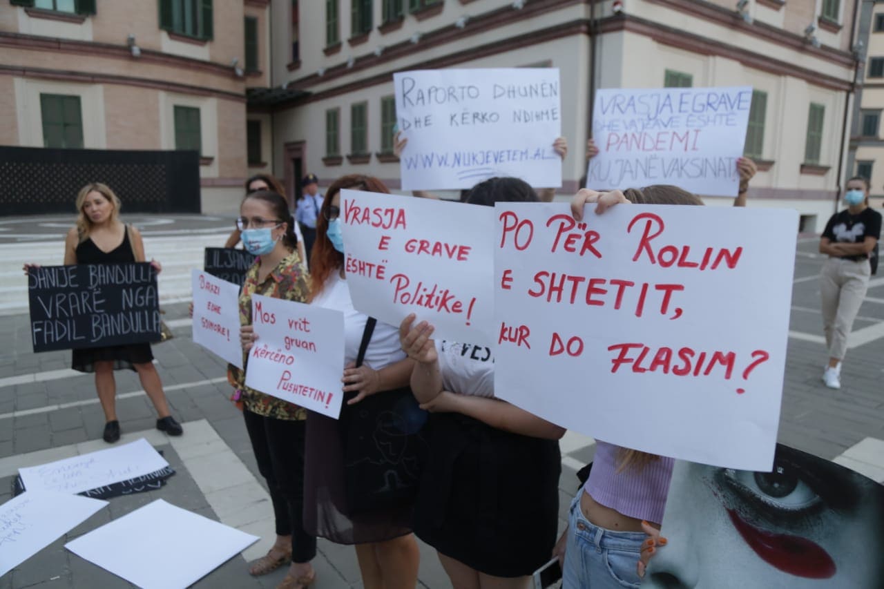 Protestuesit mbajnë në duar pankarta në të cilat janë shkruar mesazhe si “Dua të shkollohem, burri nuk është institucion emancipues”, “Vrasja e grave dhe vajzave është pandemi, ku janë vaksinat?” “Raporto dhunën dhe kërko ndihmë” etj.