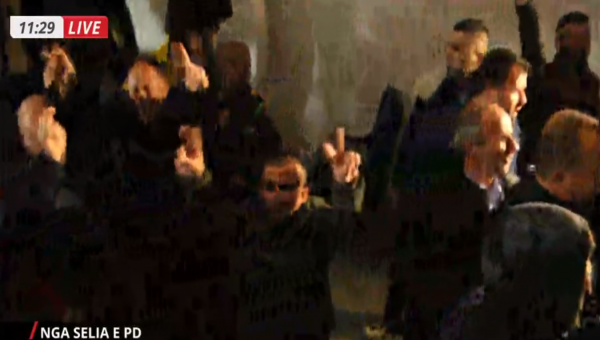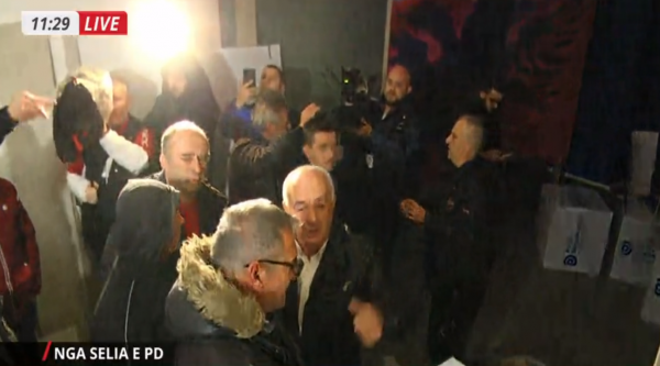 Pak momente më parë jashtë mureve të PD-së u shënuan përplasje mes mbështetësve të Berishës dhe Roland Bejkos. Ky i fundit mbeti jashtë derës së kyçur të PD-së, ku shkoi për mbledhje ndërsa protestuesit e përcollën jashtë duke e shoqëruar me ofendime dhe me goditje.