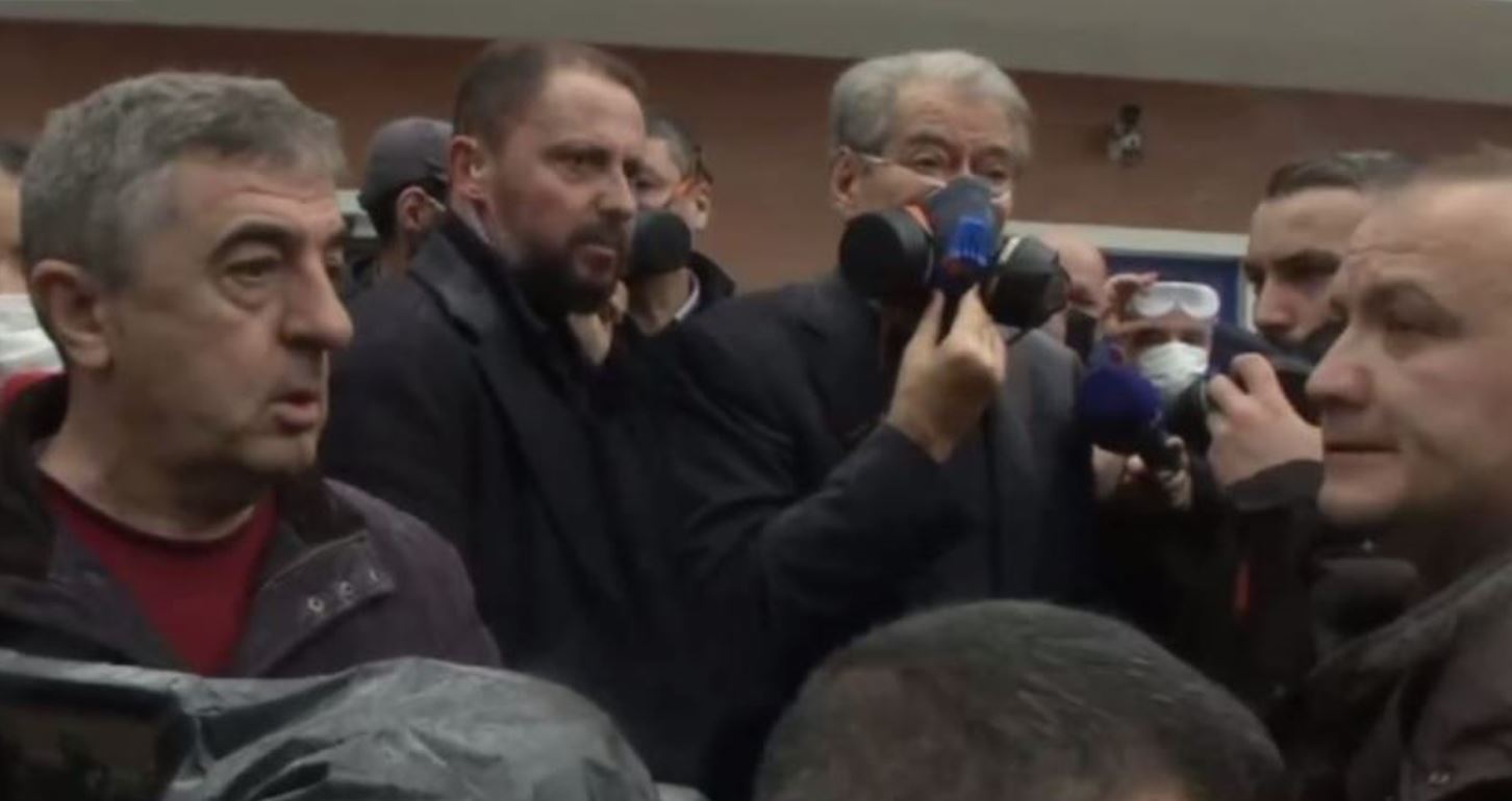 Ndërsa policia ka marrë nën kontroll selinë e PD, ish-kryeministri Berisha është shfaqur para selisë së PD-së me maskë kundër gaz, ndërkohë që policia ka shpërndarë mbështetësit e tij që ishin në ambientet e selisë. Fillimisht Berisha tentoi të flasë te shkallët, por më pas është larguar për në pjesën anësore të saj.
