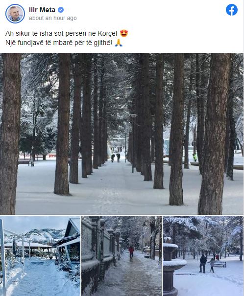 Ditën e sotme, ka bërë postimin tjetër të radhës për Korçën. Nisur nga fakti që sot në këtë qytet ka rënë borë, Meta ka thënë se sot do të donte të ishte në Korçë.