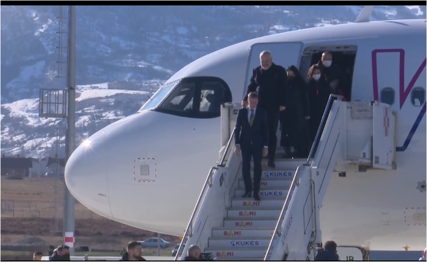 Në aeroport ndodhet edhe kryeministri Edi Rama, i cili ka zbritur në aeroportin e Kukësit së bashku me Elisa Spiropalin dhe Belinda Ballukun.