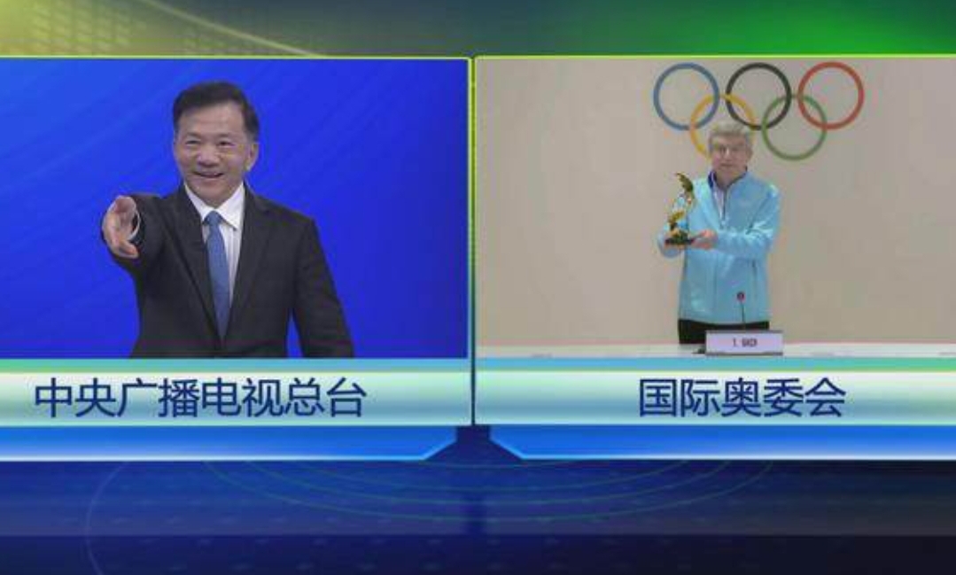 Presidenti i Komitetit Olimpik Ndërkombëtar (KON) Thomas Bach i dha presidentit të Grupit Mediatik të Kinës (CMG) Shen Haixiong Trofeun e Presidentit të KON-it për të vlerësuar kontributin e dhënë nga CMG dhe Shen për promovimin e kauzës së Lojërave Olimpike ndërkombëtare.