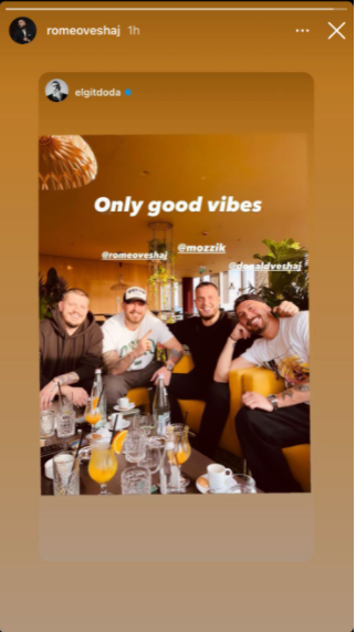 “Vetëm ndjenja të mira,”– shkruhet në foton e publikuar nga Romeo Veshaj, ndërkohë që vihet re se mungon këngëtarja Beatrix Ramosaj.