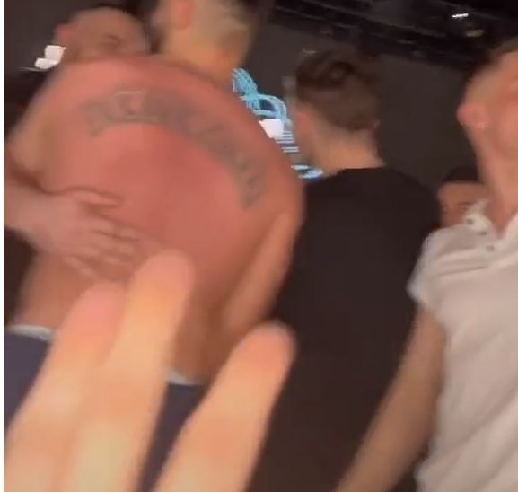 Reperi Noizy është parë duke performuar në një koncert kur në një moment, heq bluzen dhe hidhet mbi turmën.
