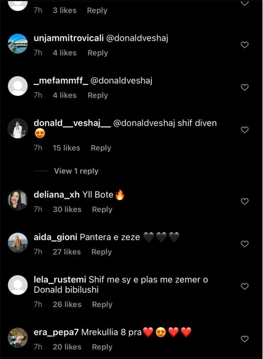 Në foton e Borës cila shfaqet e gjitha e veshur me të zeza ka pasur një mori komentesh duke bërë tag Donaldin.