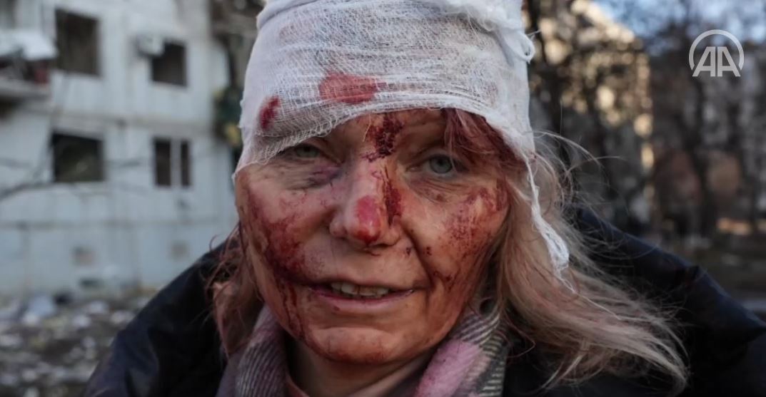 Në pamjet e bëra publike nga AA, duket se një burrë ukrainas qan para trupit të vdekur të një personi tjetër. Një person në Twitter shkruan se viktima mund të jetë djali i tij, i vrarë në sulmin e artilerisë ruse.