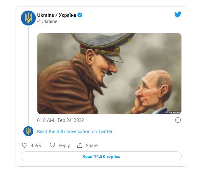 Llogaria zyrtare e Ukrainës në Twitter ka publikuar një foto ku ironizon pushtimit nga Rusia.