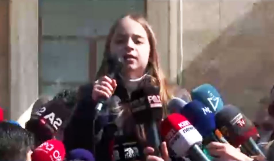Mes të tjerëve në protestë marrin pjesë edhe fëmijët. Një vogëlushe që ka marrë fjalën ka fyer keq Kryeministrin duke e etiketuar me fjalën ‘legen’.