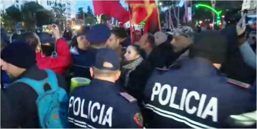 “Folni mor zotëri, më jepni një argument ligjor përse keni ardhur këtu. Ne e kemi një qëllim pse kemi ardhur këtu. Ju çfarë pune keni këtu? Nëse është ndonjëri prej jush burrë të na shpjegojë përse keni ardhur këtu të ndaloni protestuesit?” – u shpreh njëri prej protestuesve.