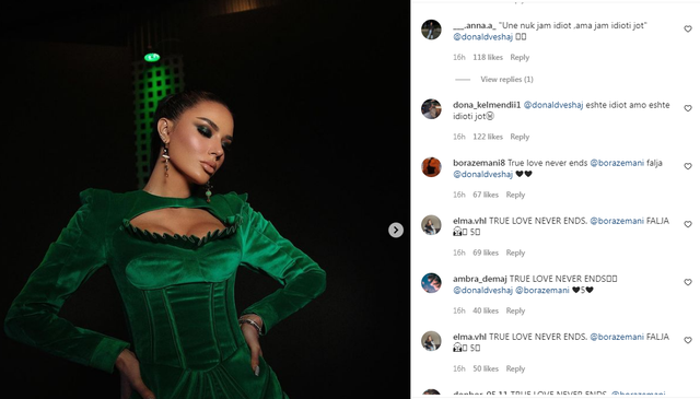 "E dëgjove këngën?", "Ku e ke idiotin?", "Une nuk jam idiot ,ama jam idioti jot", "Eshte idiot amo eshte idioti jot", janë disa nga komentet ndërsa të tjerë i kërkojnë ta falë Donaldin sepse "Dashuria e vërtet nuk përfundon kurrë".